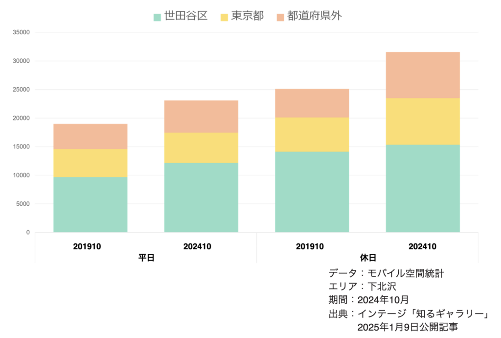 特に休日は平日と比べて日中の20代滞在者の割合が高く、世田谷区外からの訪問者も増加していることから、若年層を含む多様なターゲットに向けた体験型PRやプロモーションとの親和性が高い街と言えます。