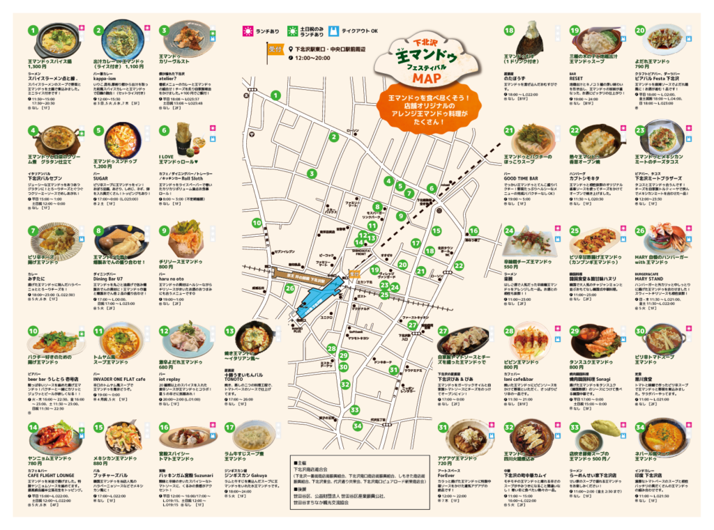 スパイスラーメン点と線. / kappa-ism / atelier? / 下北沢バルセブン / SUGAR / Roll Sloth / みずたに / Dining Bar U7 / haru no oto / beer barうしとら壱号店 / INVADER ONE FLAT cafe / iot replay / 十勝うまいもんバルTONOTO / CAFE FLIGHT LOUNGE